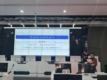 (本网消息)11月4日下午,应人工智能学院邀请,南开大学陈省身数学研究所符方伟教授在智慧大楼数字安全实验室3001作主题为 “信息论与编码理论”的学术报告。人工智能学院院长余宏生、副院长许小芳、部分教师及学生参加本次报告会,报告会由副院长许小芳主持。