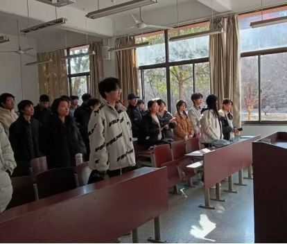 在各班级负责人的带领下,同学们肃立,对着大屏观看宪法文本,齐声诵读宪法序言及公民基本权利与义务等核心条款。庄严的条文通过青年学子清晰而有力的声音回荡在教室与校园角落,既彰显了宪法的神圣与尊严,也展现了新时代大学生对法治的尊崇与认同。诵读过程中,同学们神情专注、态度肃穆,在逐字逐句的品读中深刻领会宪法作为国家根本大法的核心要义,明确自身享有的权利与应尽的义务,切实感受到宪法与个人成长、校园生活、社会发展的紧密联系。
